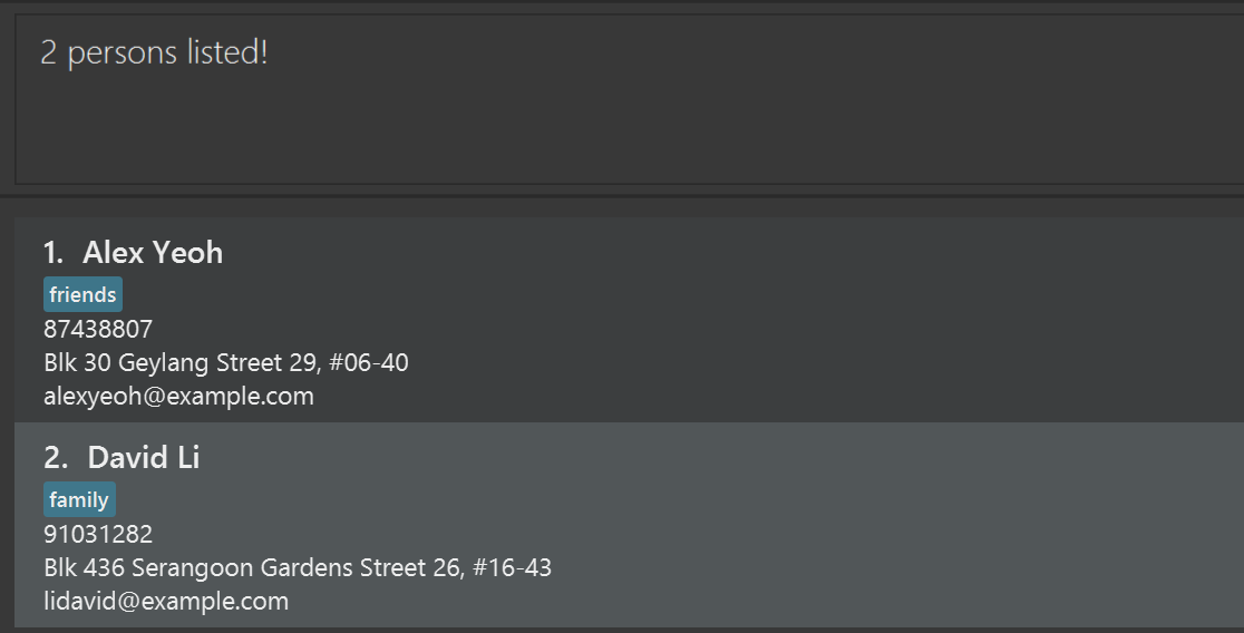 • When editing tags, the existing tags of the person will be removed i.e adding of tags is not cumulative.